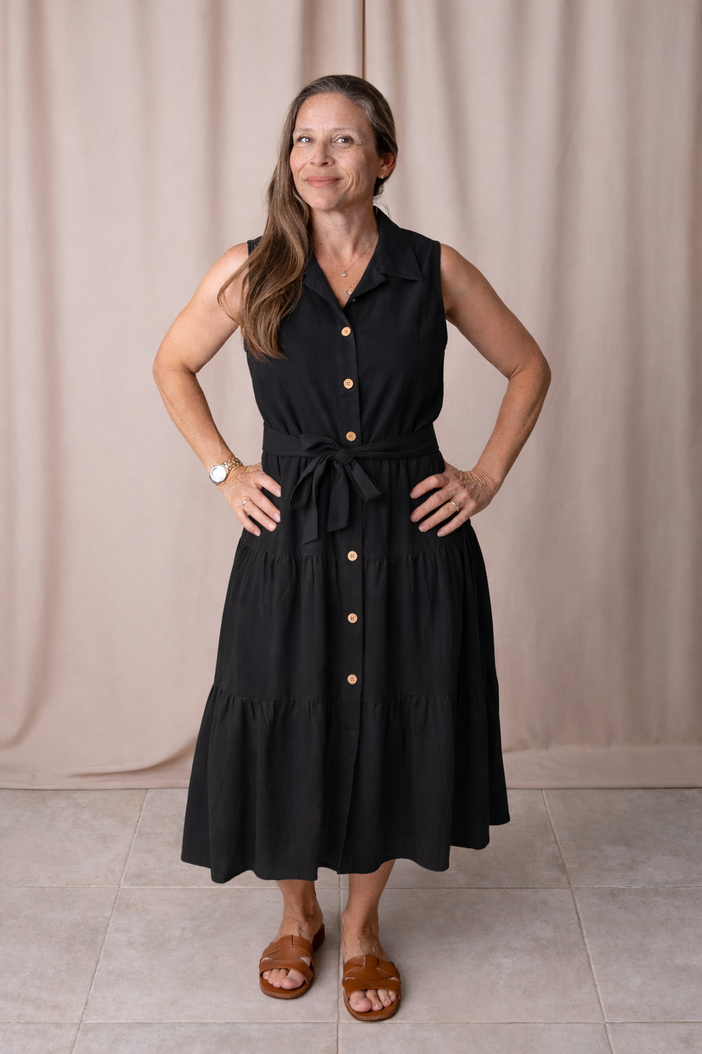 De estilo camisero sin mangas, está confeccionado en lino liviano, ideal para los días cálidos y para quienes buscan comodidad sin resignar estilo.
