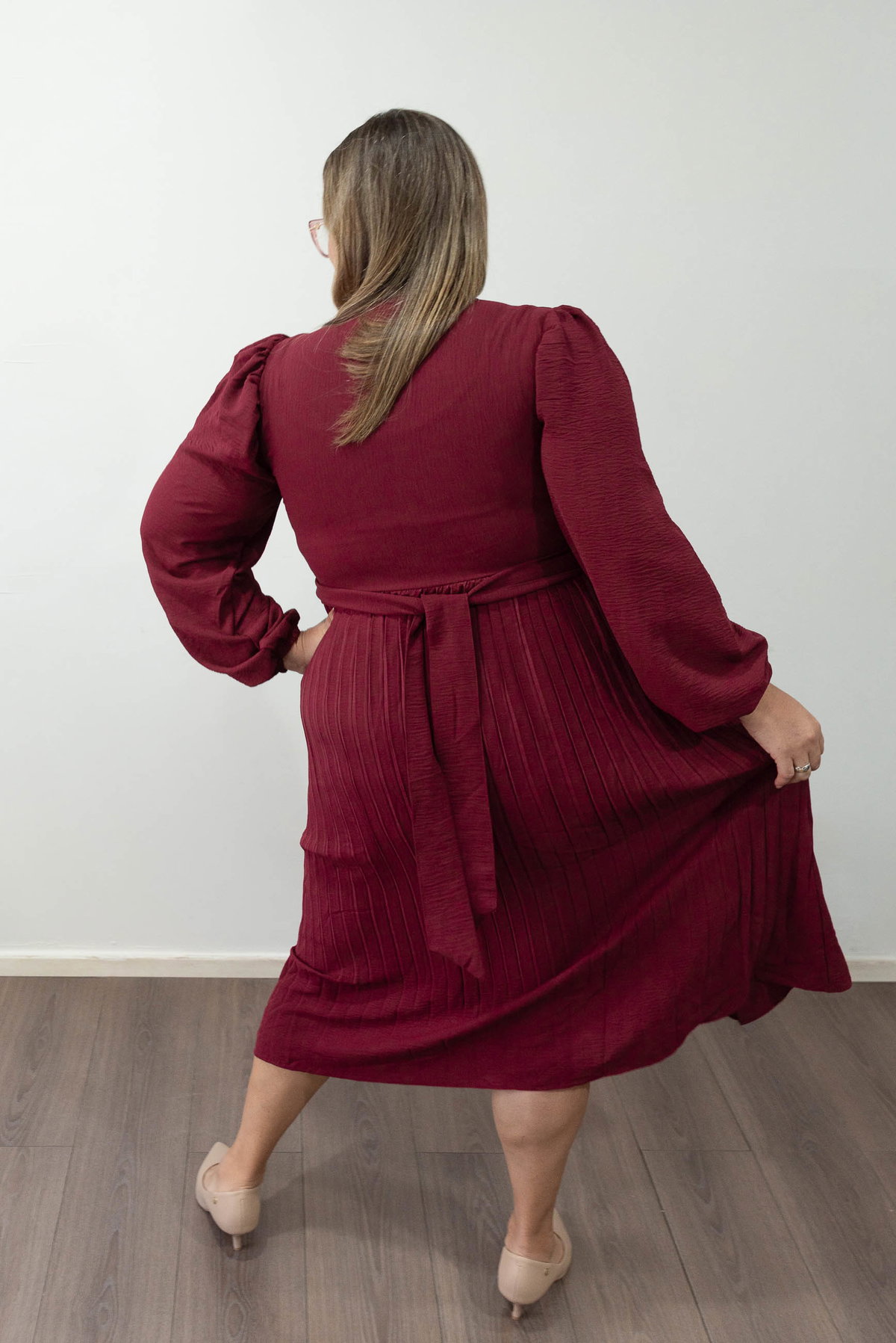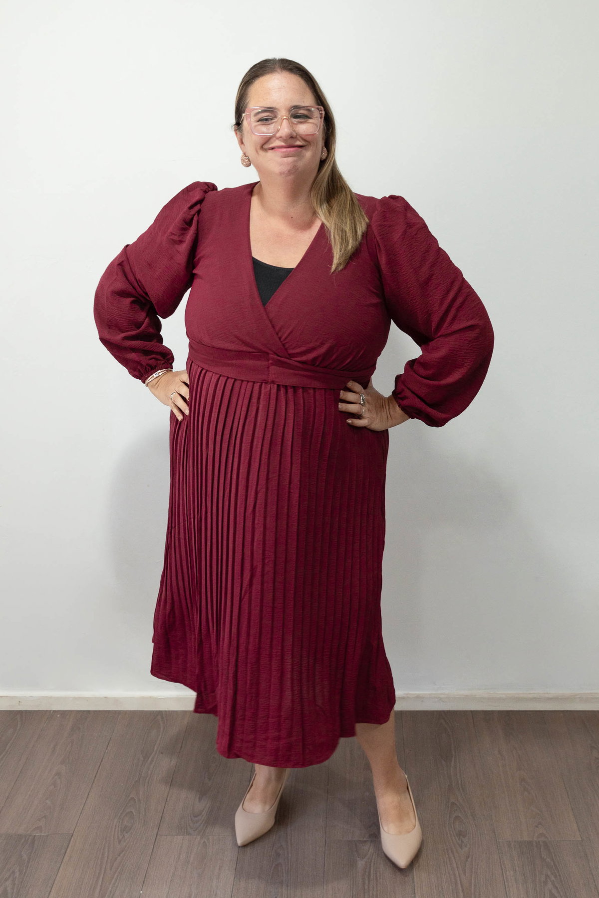 Su diseño con escote cruzado realza el busto, mientras que la cintura marcada estiliza la silueta y la falda plisada aporta movimiento y elegancia en cada paso. Es una prenda versátil, ideal tanto para un evento especial como para una salida más relajada.