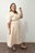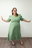 Las mangas cortas aportan frescura y equilibrio al diseño, mientras que su largo a la rodilla lo convierte en una opción ideal tanto para el día como para ocasiones especiales.