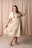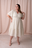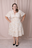 Su escote en V estiliza el busto, mientras que el corte bajo el busto define la cintura de manera favorecedora sin ajustar. Las mangas cortas brindan comodidad y frescura, y la falda amplia con caída suave acompaña el movimiento del cuerpo, logrando un calce cómodo y armonioso.