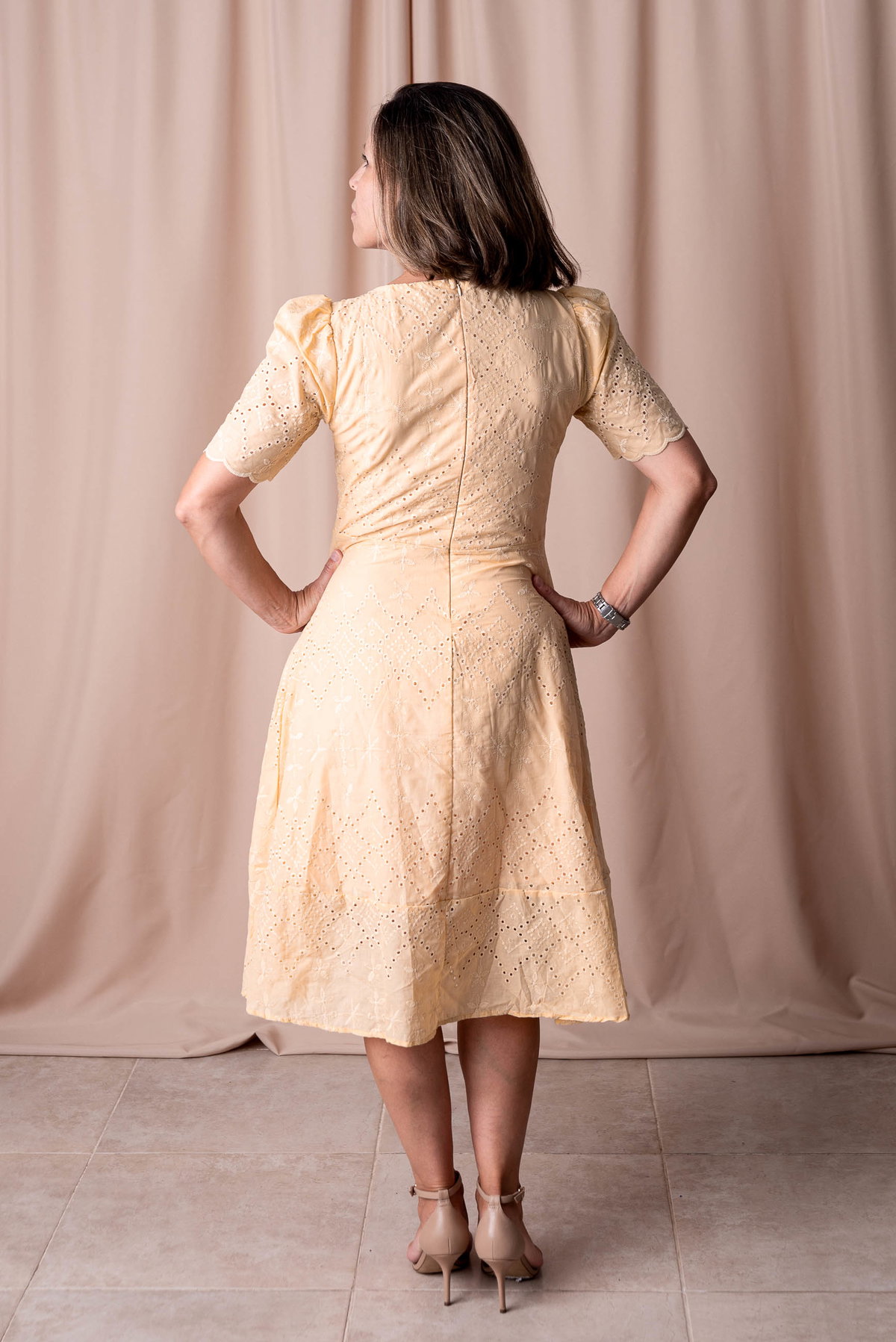 El Vestido Alice es pura feminidad y delicadeza. Confeccionado en broderie (bordado calado), es una prenda romántica y elegante, ideal para quienes aman los detalles especiales.